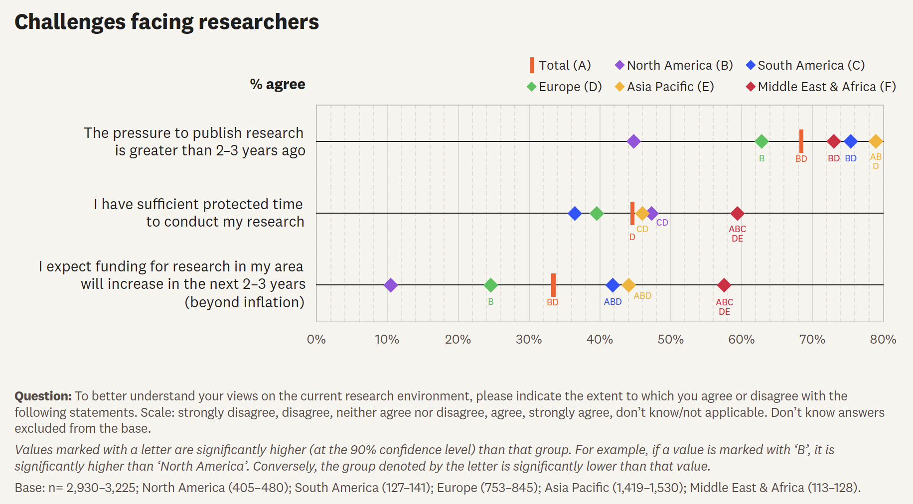 64%的中国研究者暗示认同,较着高于(55%)和欧洲(59%)。对于 AI 正在科研流程的价值,